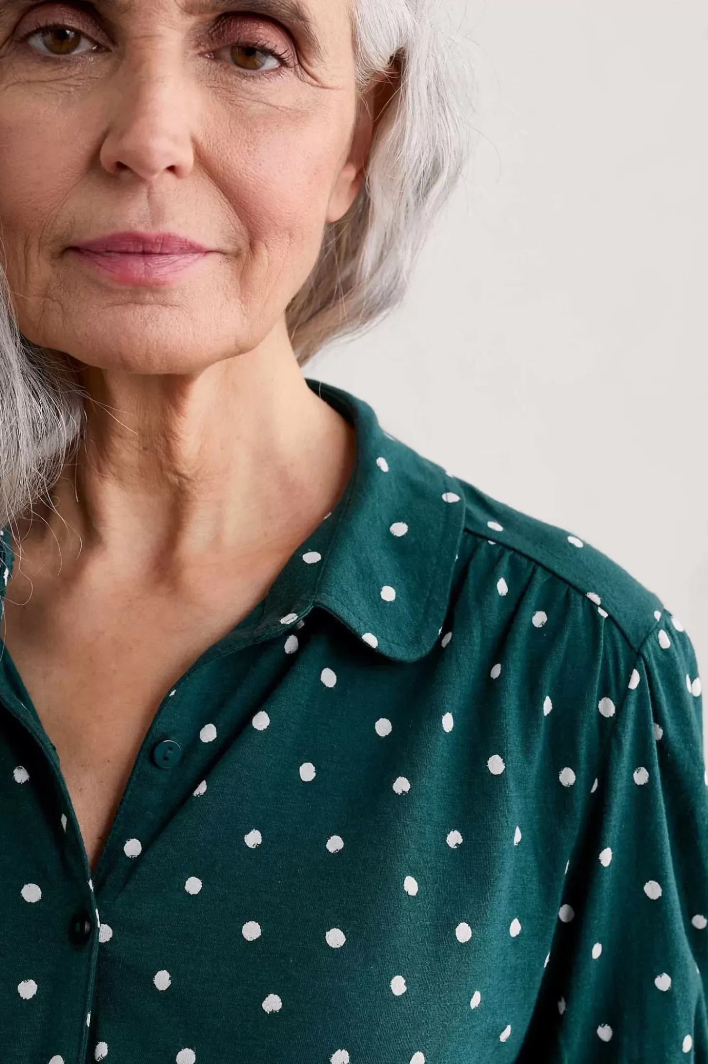 A Joyful Summer Blouse In Soft Organic Cotton And Silky Modal Blend Jersey, With Little Gathers At The Shoulder And Sleeve For Gentle Volume. A Breathable, Drapey Style That’s Perfect For Sunshine Adventures.