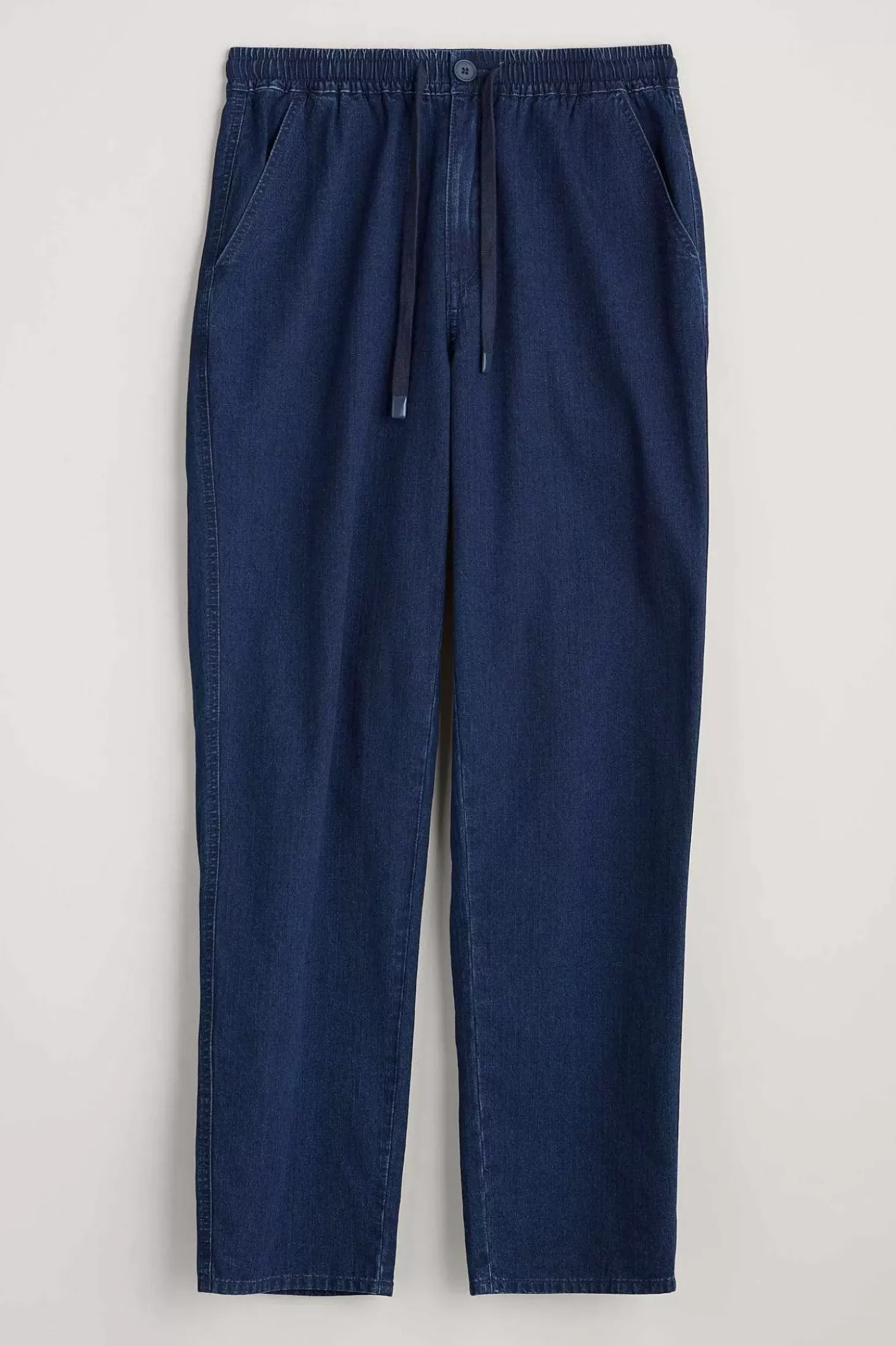 An Easy-To-Wear Trouser For Everyday Adventures. The Riggermans Have A Casual Tapered Shape With Slanted Side Pockets And Back Pockets. We’Ve Given Them An Elasticated Tie Waist With A Zip And Button Fastening. In A Herringbone Organic Cotton.