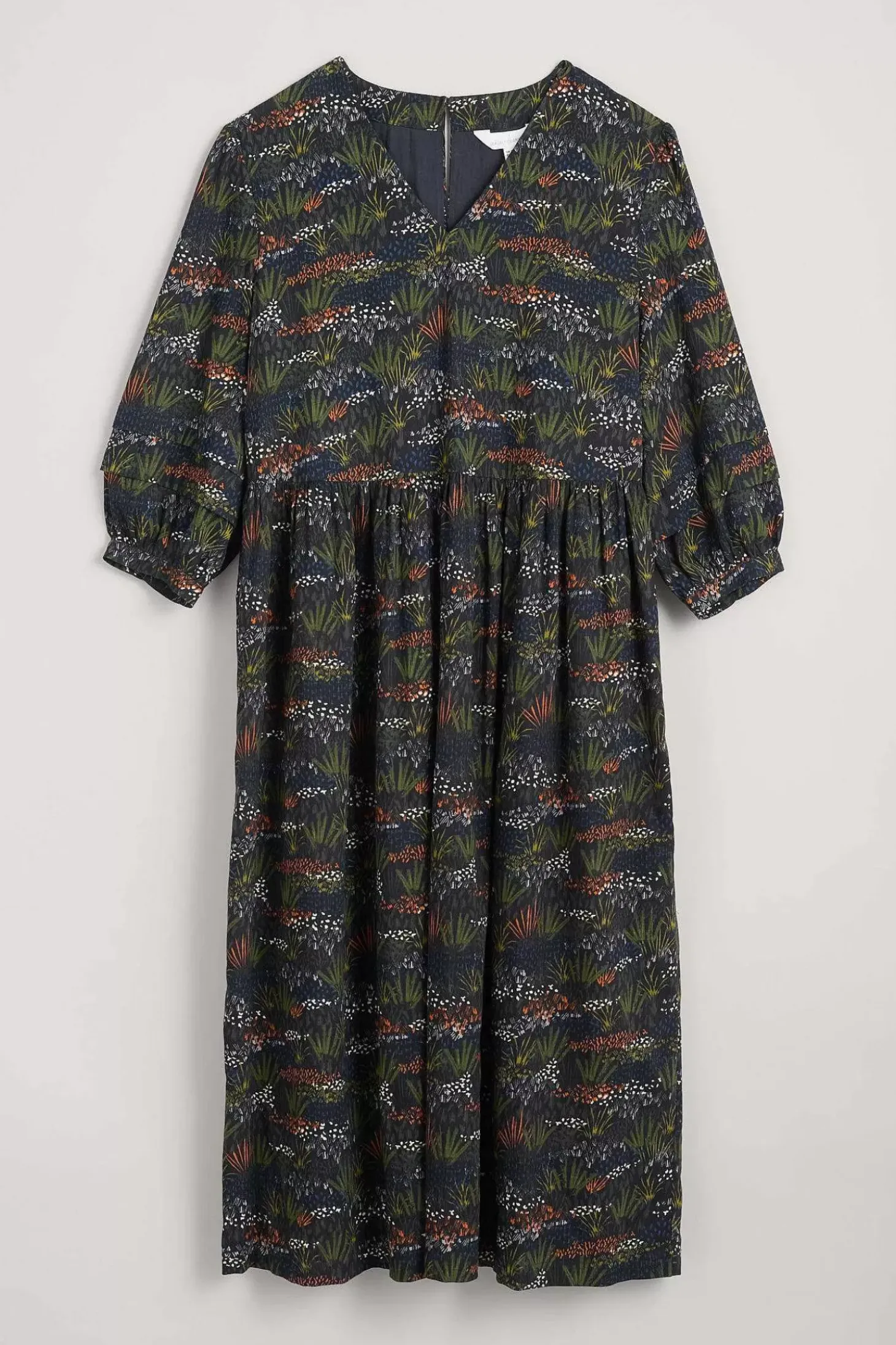 An Effortless Midi Dress With A Relaxed Waist And Pretty Pin Tuck Details On The Blouson Sleeve, Made From A Soft And Drapey Blend Of Organic Cotton And Viscose. The Body And Skirt Are Lined With A Soft And Breathable Organic Cotton Voile.