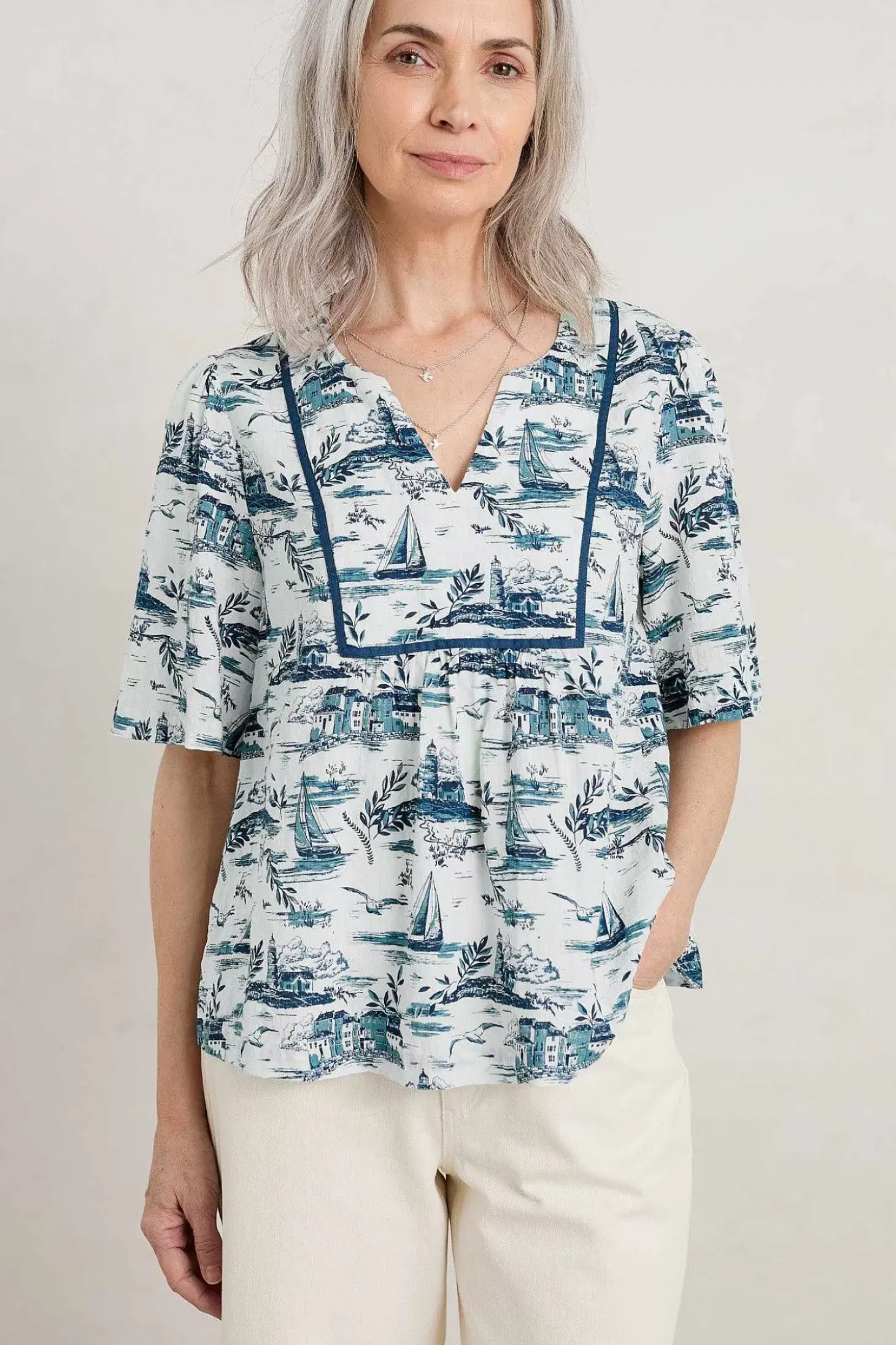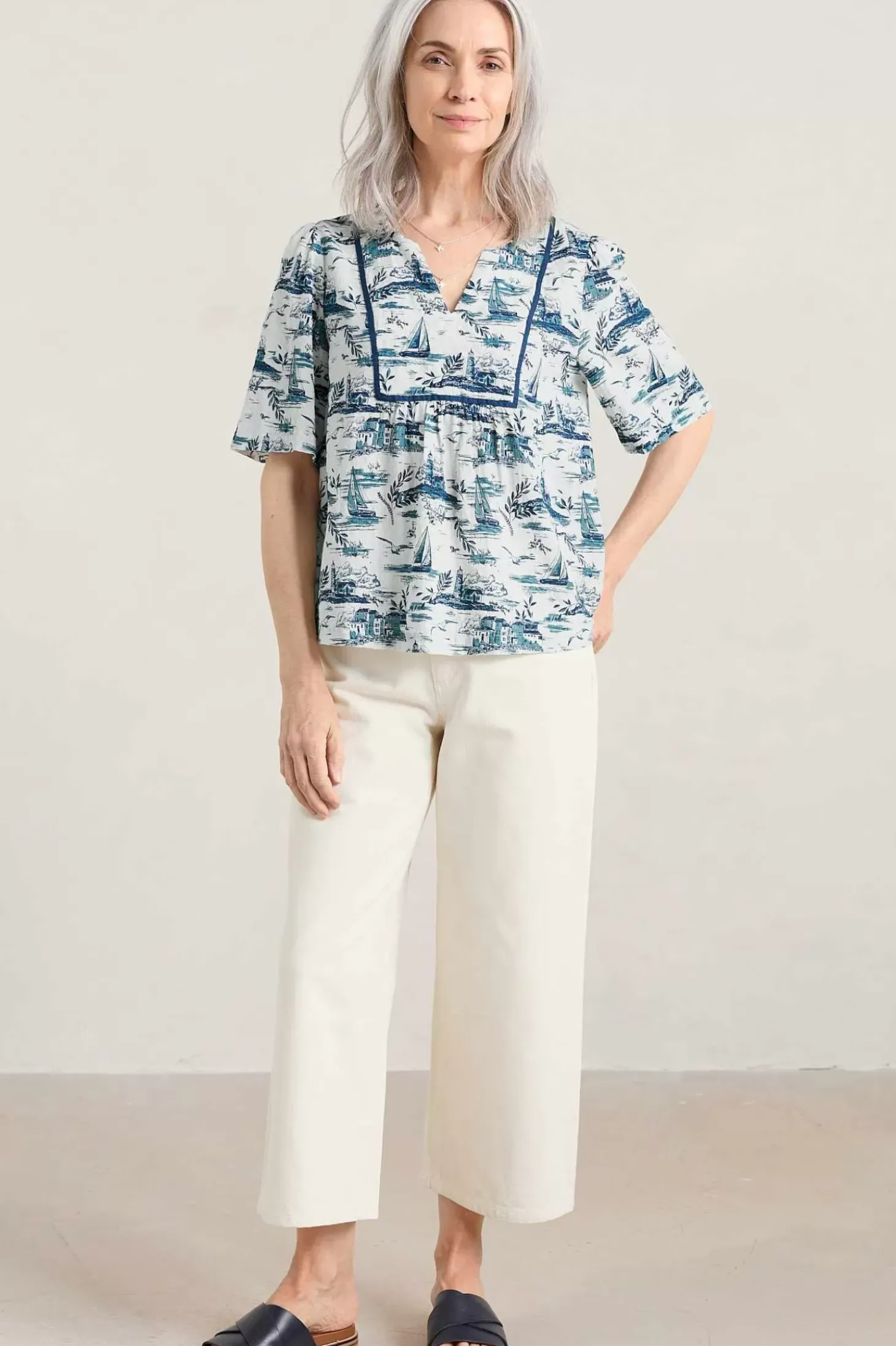 Made From A Smooth, Light, Breathable Blend Of Organic Cotton And Lenzing™ Ecovero™, This Summer-Holiday-In-A-Top Has A Notched Neckline, Bib Yoke And Gathering Under The Bust At The Front. An Easy, Breezy Piece That Pairs Perfectly With Slim Crops Or Trousers. Lenzing™ Ecovero™ Is Derived From Wood Pulp Sourced From Sustainably Managed Forests.
