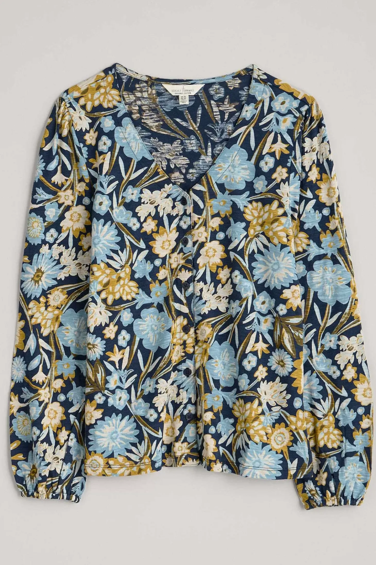 A Simple Yet Elevated Top In Soft Organic Cotton Jersey. The Button Through Butterflies Top Has A Soft V-Neckline, Relaxed Fit And Three-Quarter Length Blouson Sleeves. A Selection Of Hand-Drawn Seasalt Prints, Pair With Jeans Or Shorts To Add Some Pattern And Colour To Everyday Looks.