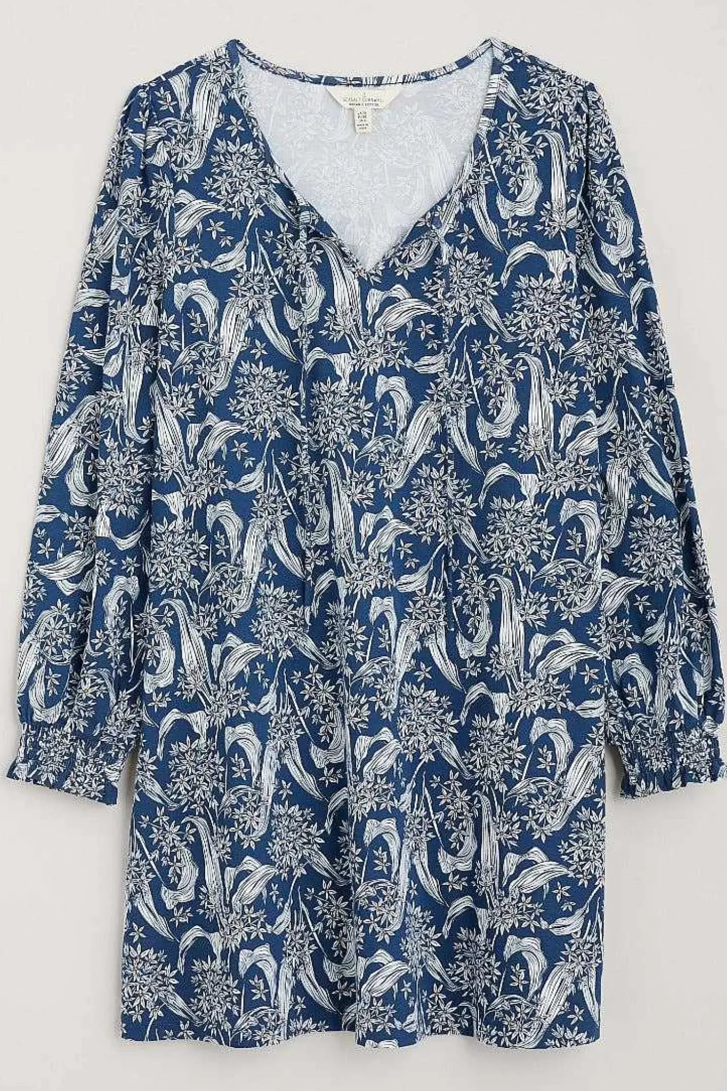 A Simple Tunic With Elevated Details And A Rich Print, In Soft And Easy Organic Cotton Jersey. The Notch Neckline Has A Tie Detail And The Dropped Sleeves Have A Subtle Blouson Shape. Shirred Poet Cuffs Are The Final, Elegant Touch. Perfect For Pairing With Narrow Trousers.