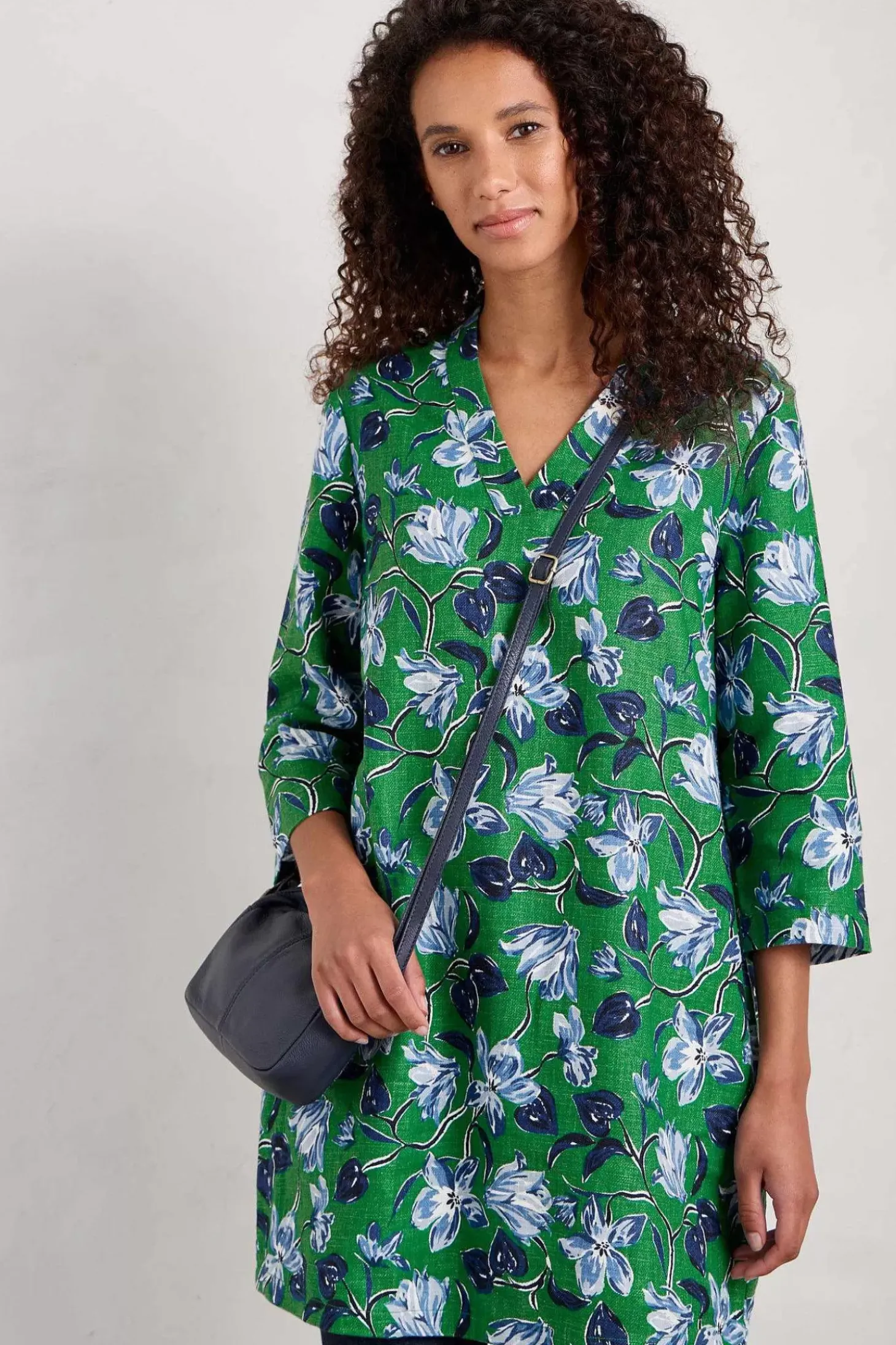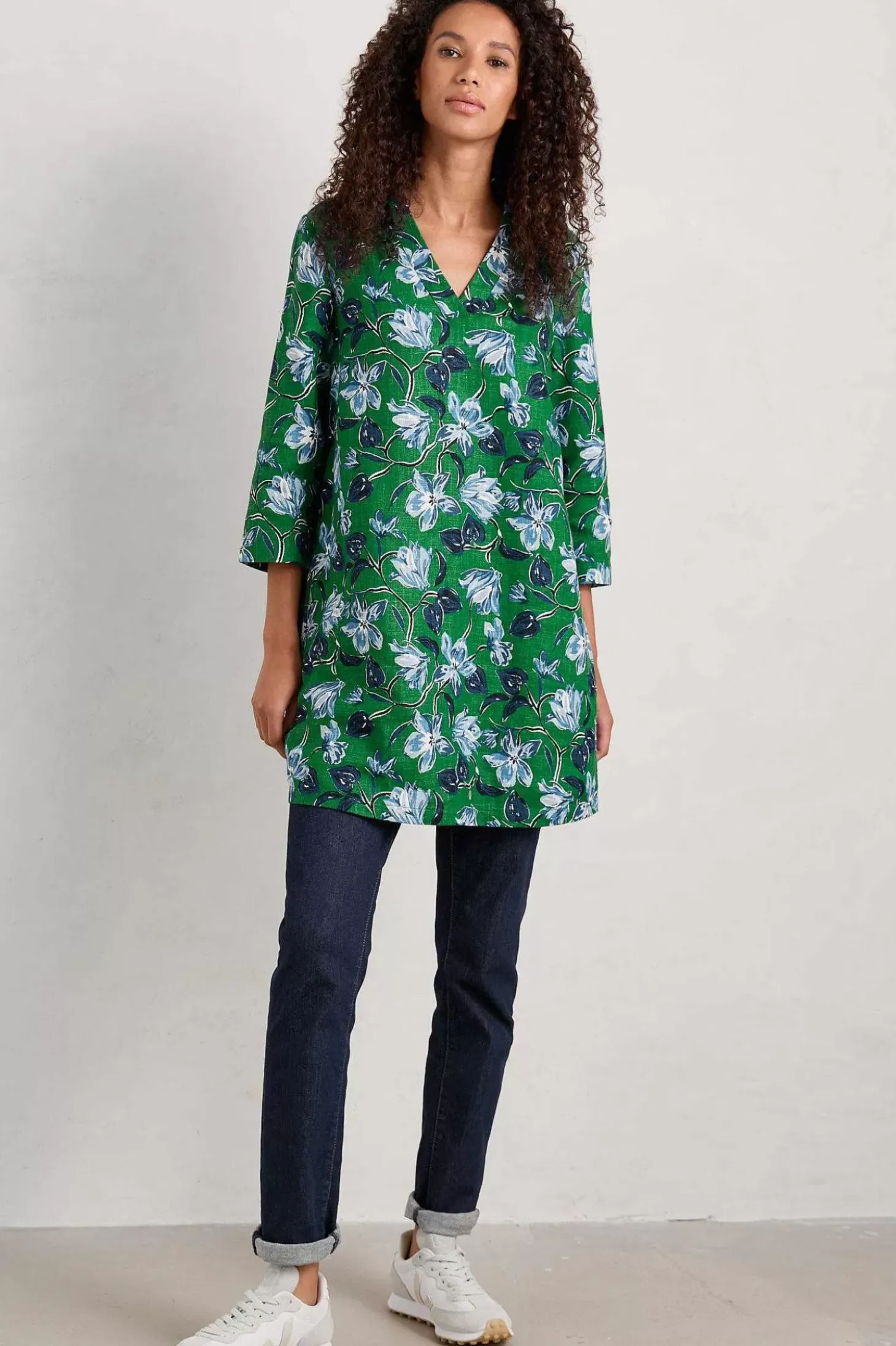 Made With A Soft Blend Of Cotton And Ramie, This Easy Fit Tunic Has A Subtle Slub Texture And A Lovely Drape. With A V-Neck And Straight 3/4 Sleeves, It’s Ideal For Layering Over A Simple T-Shirt And Leggings.
